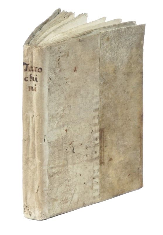 In-8° (mm 167x110). Pagine 123, [1]. Marca incisa al frontespizio. Copia lievemente gorata, altrimenti buono stato. Legatura coeva in piena pergamena di riuso da un frammento pergamenaceo del XIV secolo, dorso rivestito con carta settecentesca.