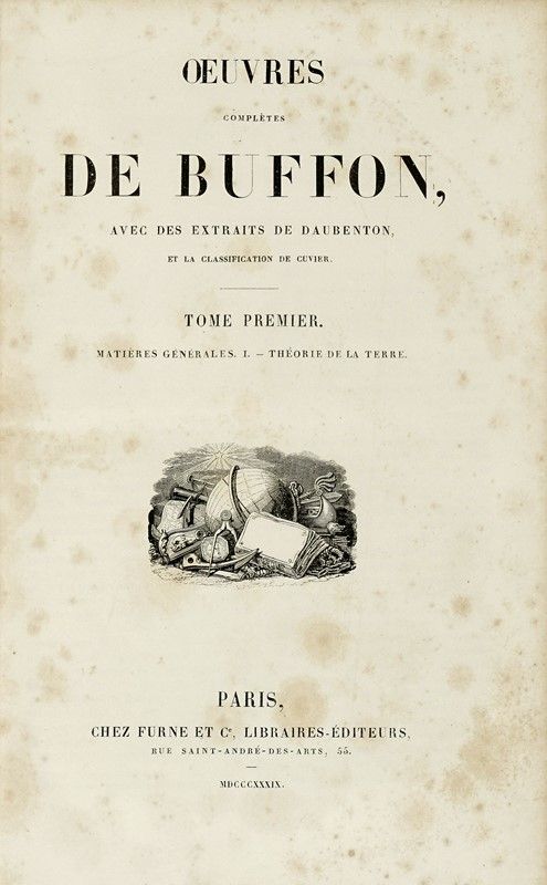 Compongono il lotto: 1) Wood J.G., The new illustrated natural history. London: George Routledge and sons, 1874. 2) Avray H.Tipping, English Gardens. London: Country Life ltd, 1925. 3) Le langage de fleurs. Paris: J. H. Briard, [1800]. 4) Buffon, Oeuvres completes... Tome premier (-sixieme). Paris: chez Furne, 1839. 6 volumi.