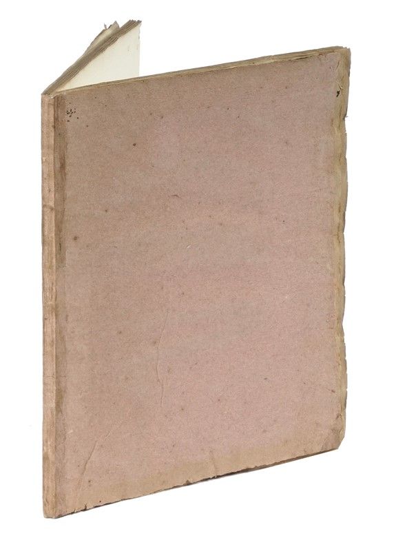 In-4° (mm 265x200). Pagine VIII, 80 con 1 tavola fuori testo a piena pagina incisa in calcografia. Copia lievemente brunita, in alcuni punti con brunitura più intensa in corrispondenza dello specchio di stampa e dei margini, ma completa e parzialmente intonsa. Legatura coeva in tutta carta rosa.