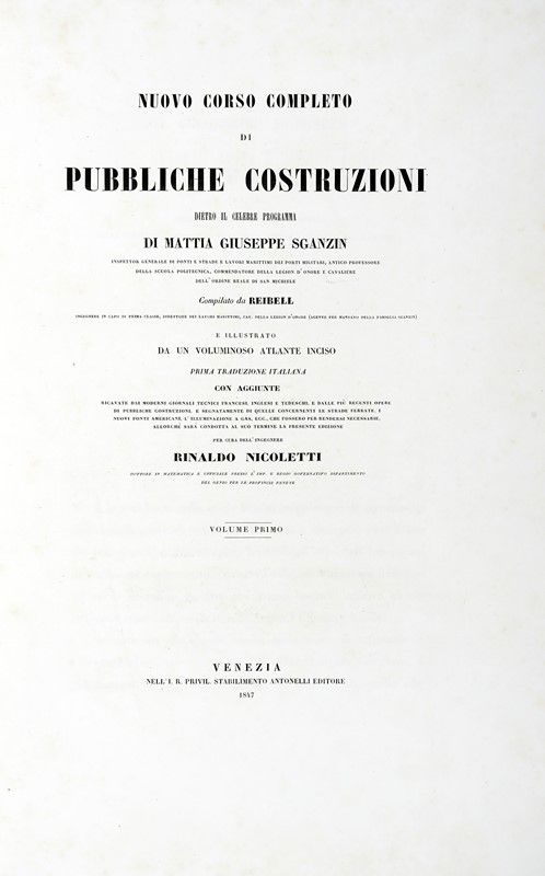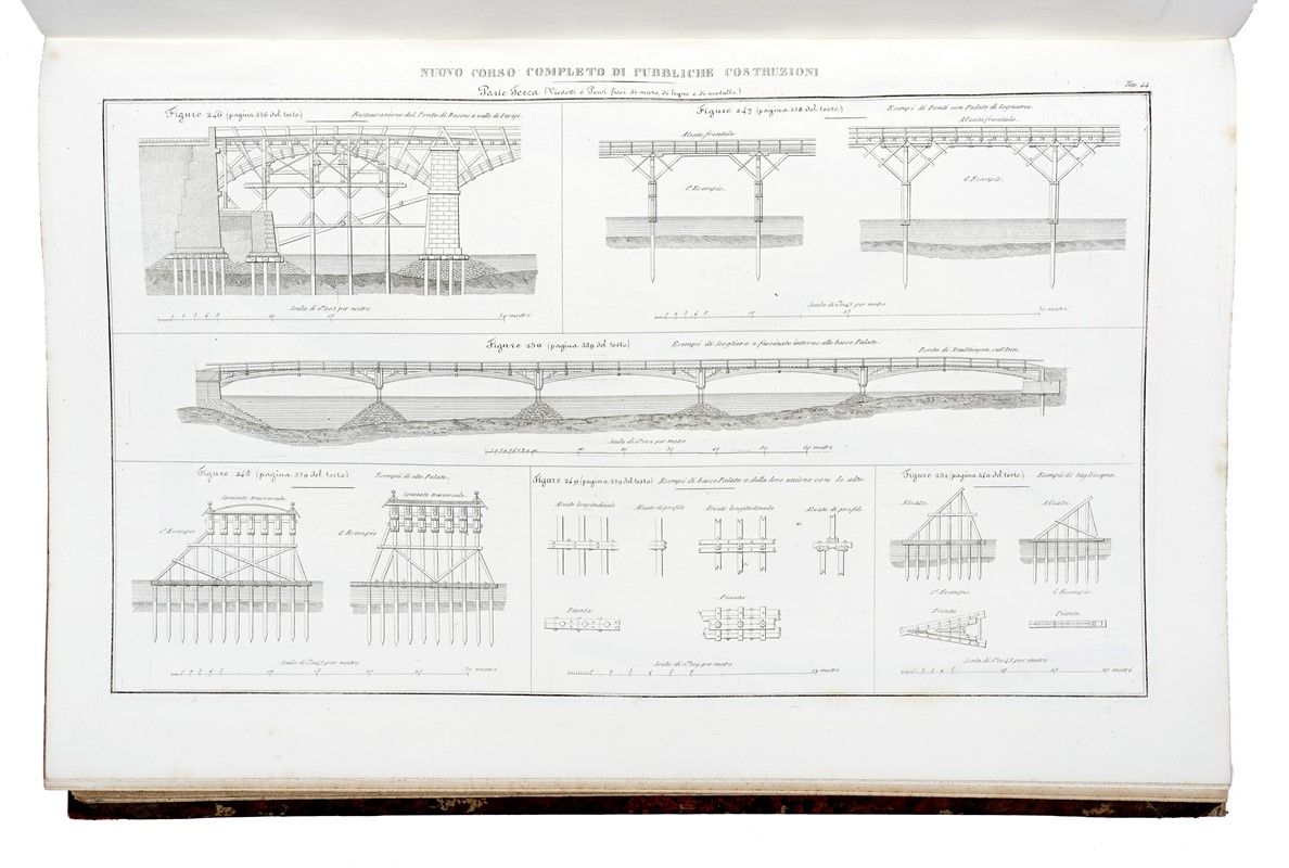 3 tomi in 2 volumi di testo in-folio (mm 505x325) + 1 volume di tavole (mm 505x325). Pagine XII, colonne 400, pagine [5], colonne XLVIII, 92; pagine [2], colonne V-VIII, 156 [i.e. 444]; pagine [2], colonne V-VIII, 766, pagina [1]; pagine [2], 218 tavole calcografiche, di cui 180 numerate 1-180 e 38 numerate I-XXXVIII (di questa 6 sono ripiegate). Fioriture diffuse, anche ad alcune tavole; accese bruniture a rare carte. Legatura coeva in mezza pelle, con piatti marmorizzati, fregi e titoli in oro al dorso. Lievi abrasioni e spellature, ma nel complesso buona conservazione.