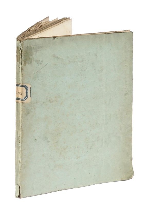 In-4° (mm 265x200). Pagine 51, 1 bianca con 7 tavole ripiegate fuori testo. Alcune gore marginali ma copia completa e ancora intonsa. Brossura in piena carta verde. Vecchia etichetta di collocazione sul dorso.