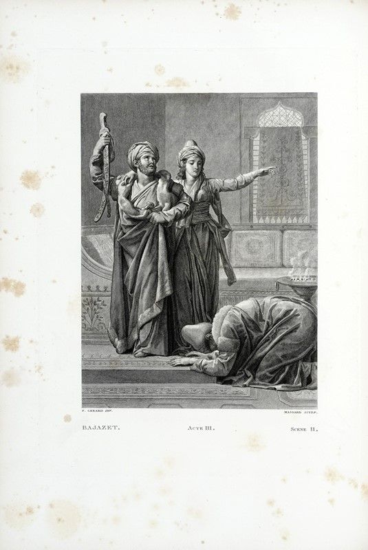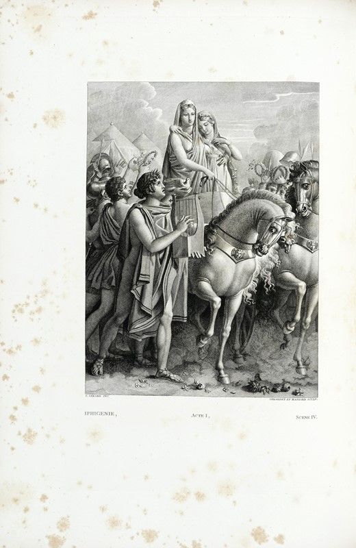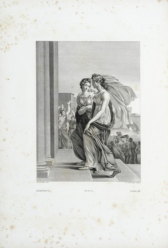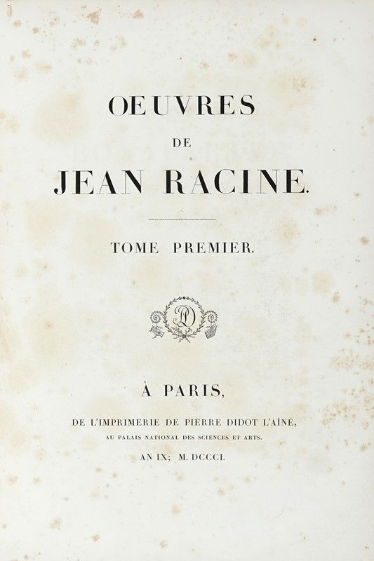 3 volumi in folio massimo (mm 480x335). Pagine [8], 466, [1], 1 bianca con 1 antiporta incisa e 23 tavole a piena pagina fuori testo; [4], 500, [1], 1 bianca con 25 tavole a piena pagina fuori testo; [4], 416 con 8 tavole fuori testo. Con, nel complesso, 1 antiporta e 56 illustrazioni a piena pagina da disegni di Prudhon, Girodet, Chaudet, Gérard. Fioriture a parte delle carte. Es. n. 41 su una tiratura di 250 esemplari, firmato da Pierre Didot l'ainé alla pagina di tiratura. Splendida legatura Bozerian in pieno marocchino rosso alle armi di Napoleone, impresse in oro al centro di ciascun piatto e riquadrate da cornici concentriche di filetti a fregio fitomorfo, anch'essi in oro. Sguardie in seta azzurra, tagli dorati, dentelles alle unghiature, segnalibri in seta. Ciascun volume conservato entro custodia in cartonato.