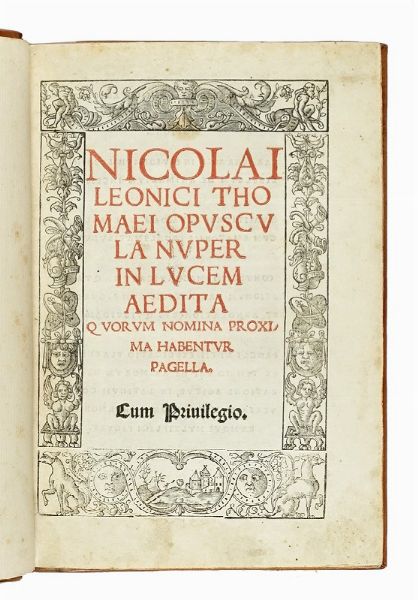 In-4° (mm 211x145). Carte CXXXIX, [5]. Frontespizio in rosso e nero entro bella bordura xilografica; splendidi capilettera in legno. Numerose illustrazioni xilografiche nel testo. Rare fioriture marginali e forti bruniture al fascicolo finale contenente l'errata e probabilmente proveniente da altro esemplare. Legatura moderna in pieno vitello, con cornice a secco ai piatti e timbro di appartenenza a secco a quello posteriore. Tagli dorati ed elegantemente goffrati (da legatura precedente). Lievi abrasioni al dorso e alle cuffie.