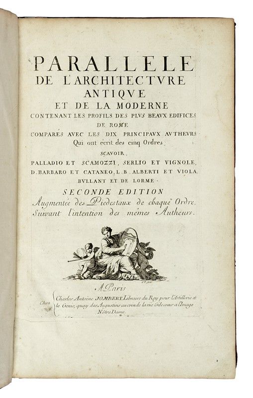 In-folio (mm 400x245). Pagine [2], 8, 100, [1]. Con, complessivamente, 49 belle tavole calcografiche, di cui una, fuori testo, all'antiporta. Vignetta al frontespizio, interamente inciso in rame; testatine calcografiche e capilettera in legno. Testo parzialmente inciso. Rare fioriture sparse, ma buona conservazione. Legatura coeva in pieno vitello screziato, con titoli e fregi in oro al dorso a 6 nervi; tagli rossi e sguardie marmorizzate. Qualche mancanza agli angoli e alle cuffie, difetti alle cerniere, e macchie ai piatti.