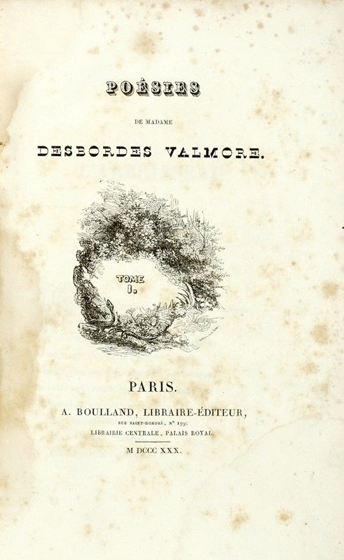 2 volumi in-8° (mm 200x123). Pagine [4], 555, [1]; [4], 510. Con 2 tavole fuori testo al secondo volume, protette da velina, di cui una disegnata da Tony Johannot. Ciascun volume con frontespizio illustrato, frontespizio tipografico e antiporta protetta da velina (quella del primo volume disegnata da Achille Jacques Jean Marie Deveria e incisa da Durand). Ritagliata e applicata su carta spessa l'antiporta del primo volume; mancante l'ultima carta del secondo. Ampie gore e fioriture sparse, forti bruniture alle pagine 241-256 del primo volume e alle pagine 497-510 del secondo, annotazioni manoscritte a pagina 248 dello stesso. Legatura coeva in mezza pelle, con piatti in carta marmorizzata e titoli in oro al dorso. Difetti alle cerniere e al dorso; altre minime mende. Lotto non passibile di restituzione.