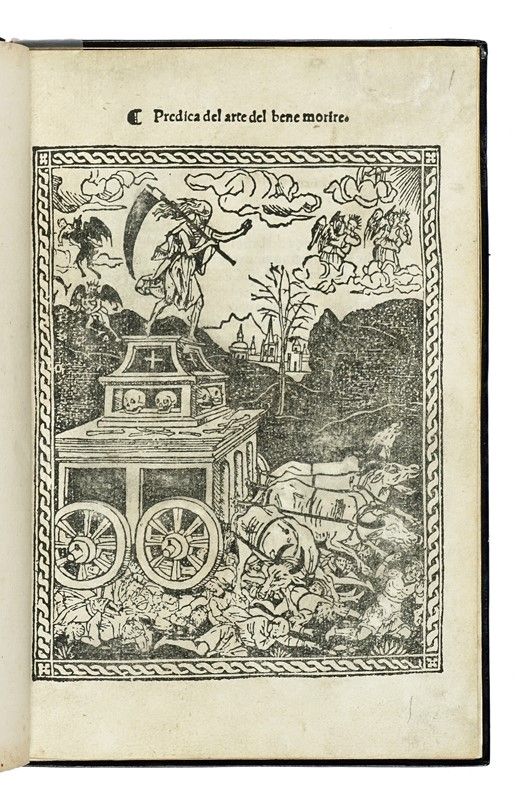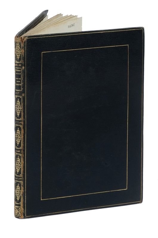 In-4° (mm 200x130). Carte [14] (di 18). Ampia vignetta xilografica al frontespizio, altre intervallate nel testo. Mancanti le carte a1, a3, a6 e a8 (a1 e a8 presenti in facsimile); trasposte le carte c1-2 e c3-4. Restauro integrativo visibile al verso della carta a2 e reintegrazioni marginali alle carte c1 c c4. Legatura moderna marocchino, con cornice di filetto dorato ai piatti, fregi e titoli al dorso. Difetti alle cerniere e alle cuffie, altrimenti buona conservazione.