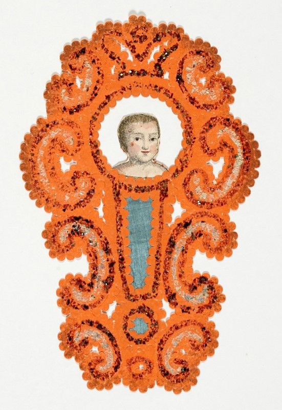 Raccolta di 19 santini italiani e francesi (1 in b/n, gli altri a colori), su supporti cartacei finemente operati a mano con tecniche varie. Conservati in raccoglitore moderno. Perfette condizioni. Dimensioni varie.