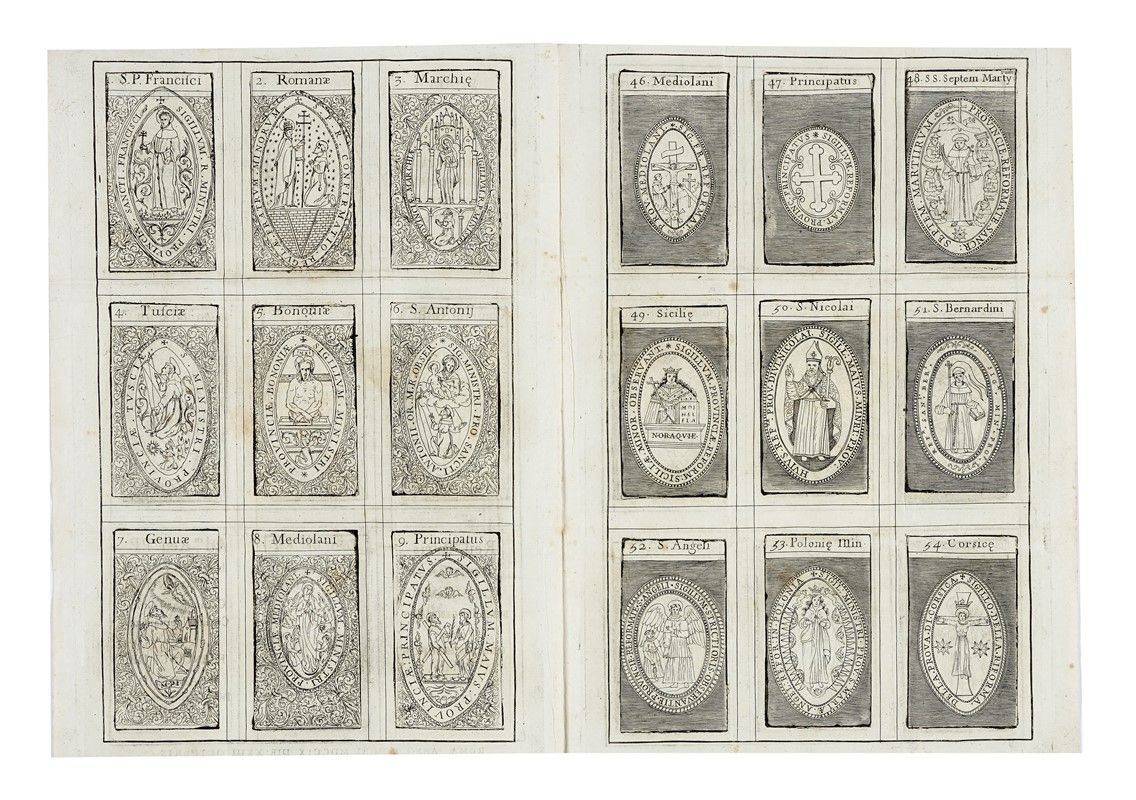 Testo a stampa. 12 fogli. Al recto della prima carta l’indicazione manoscritta Sigilla Ordinis et Provinciarum. Dimensioni: 320x225 mm.