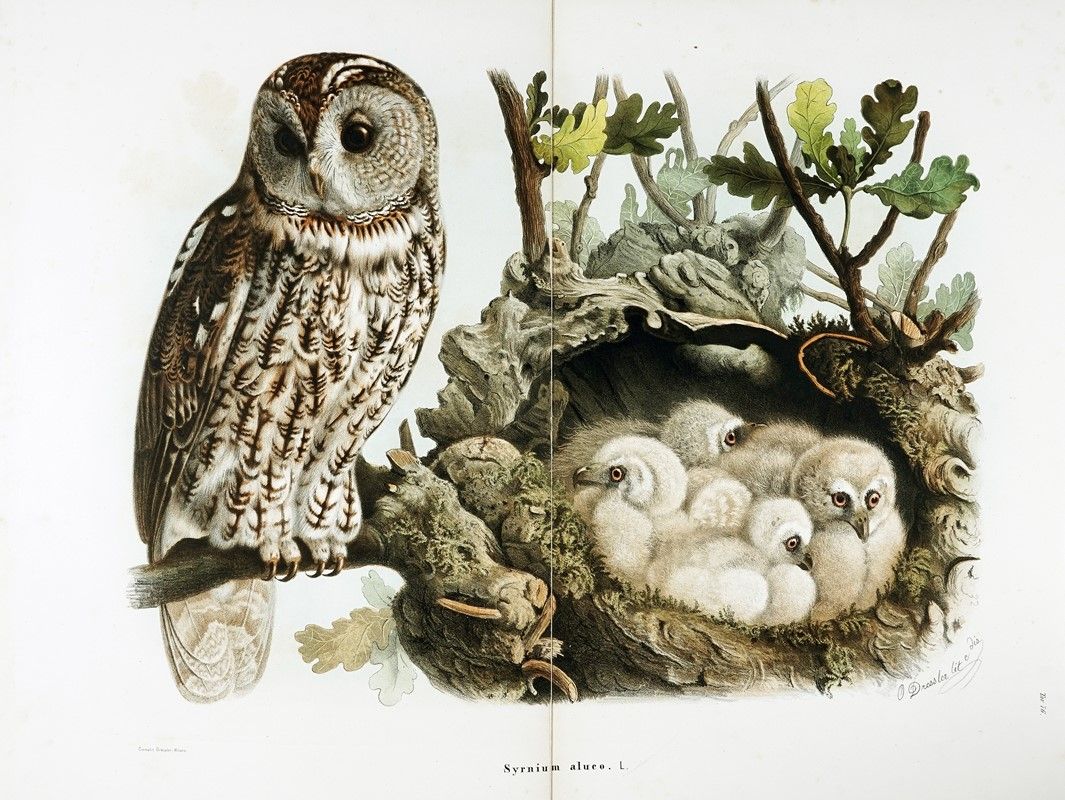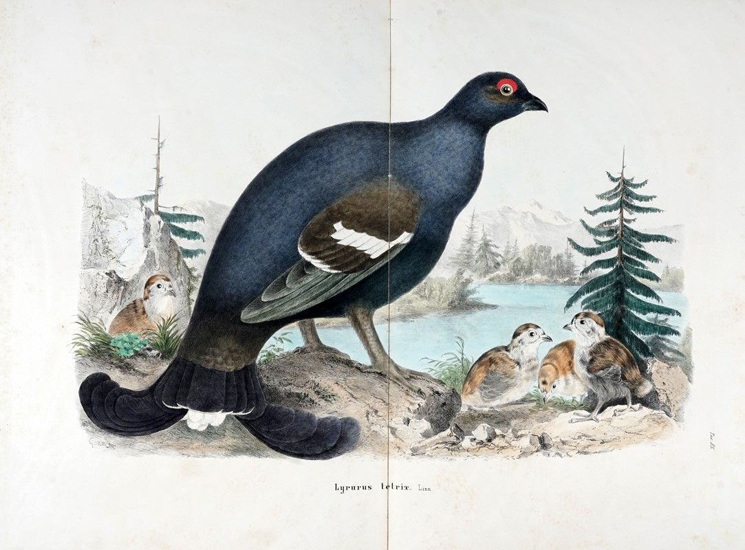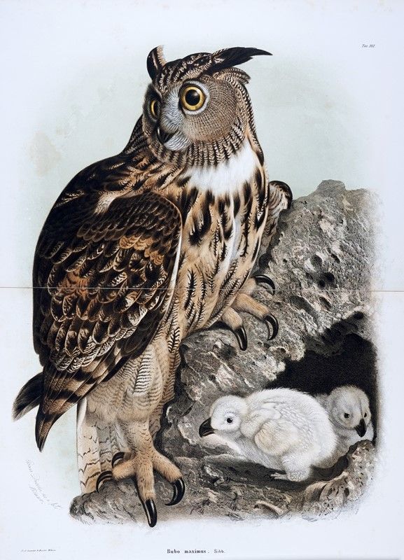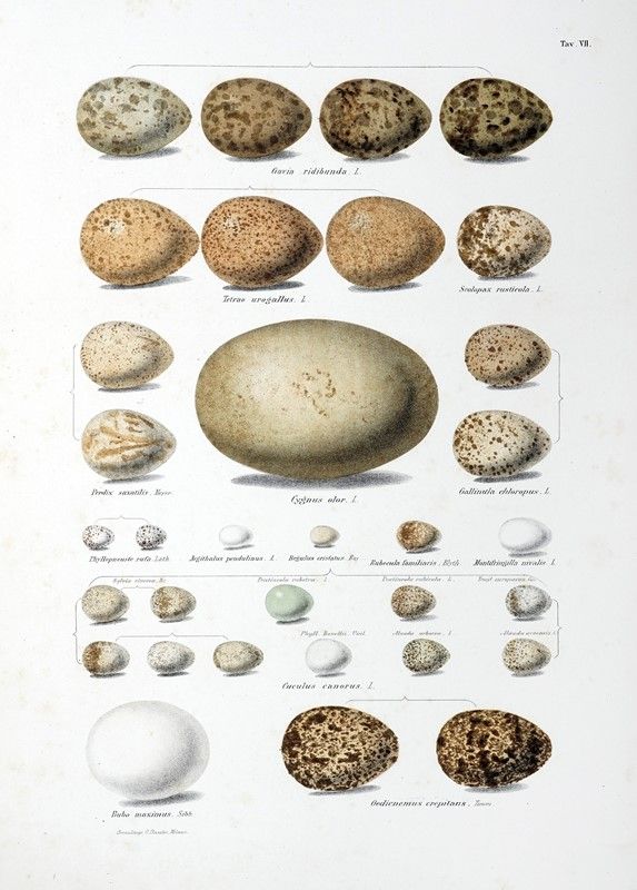 2 volumi in folio atlantico (mm 490x330). Pagine [6], 16, [172] pagine di corredo testuale alle immagini + 1 frontespizio inciso e 66 tavole fuori testo; [194] + 55 tavole fuori testo, di cui 7 numerate I-VII e contenenti la serie delle uova. Con, nel complesso, 1 frontespizio inciso e 121 tavole di formato 500x330 mm e 537x330 mm a piena e doppia pagina, tutte in coloritura e corredate di velina protettiva. Alcune lievi fioriture a parte delle tavole, altri minimi difetti ma splendida copia, completa e ben conservata. Bella legatura coeva in piena pelle con titoli impressi in oro a piatti e dorso e cornici concentriche dorate a motivo fogliato a ciascun piatto. Sguardie in carta decorata, dentelles alle unghiature, tagli dorati.