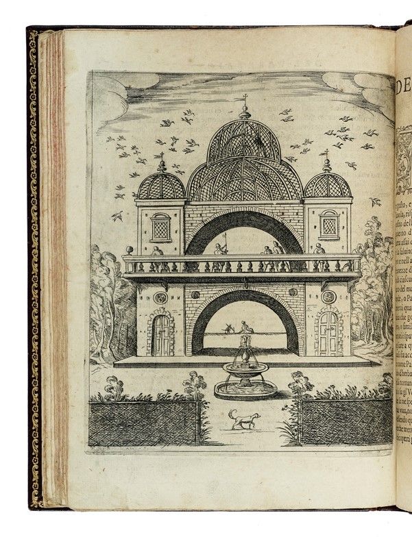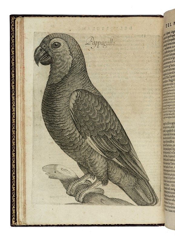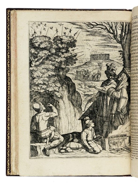 In-4° (mm 252x180). Carte [6], 67 carte, p. 68-81, [12]. Con 66 splendide tavole incise a piena pagina secondo Antonio Tempesta e Francesco Villamena. Stemma calcografico del dedicatario, Cassiano dal Pozzo, al frontespizio; testatine, capilettera e finalini in legno. Esemplare uniformemente brunito, con reintegrazioni di carta marginali al frontespizio e alle carte A2-A3, A7, F1, H6, I8. Legatura d'amatore in pieno marocchino, con illustrazione in oro al pianno entro bella cornice dorata a motifi fitomorfi; fregi in oro al dorso a 3 nervetti e dentelle dorate. Lievi abrasioni al dorso e difetti alle cuffie. Nota di possesso al frontespizio ed ex-libri al contropiatto anteriore.