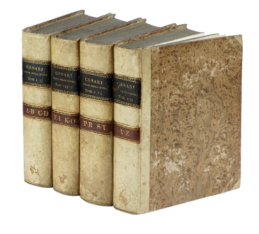 7 parti in 4 volumi in folio (mm 270x195). Legatura coeva in mezza pergamena con piatti in carta decorata e titoli in oro su tassello al dorso. Tagli spruzzati. Ex-libris di precedente proprietario in principio di volume e al frontespizio.