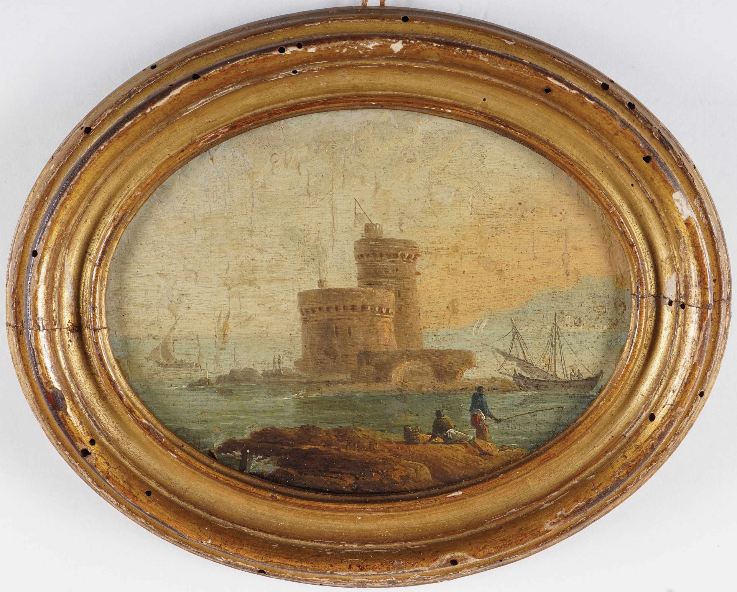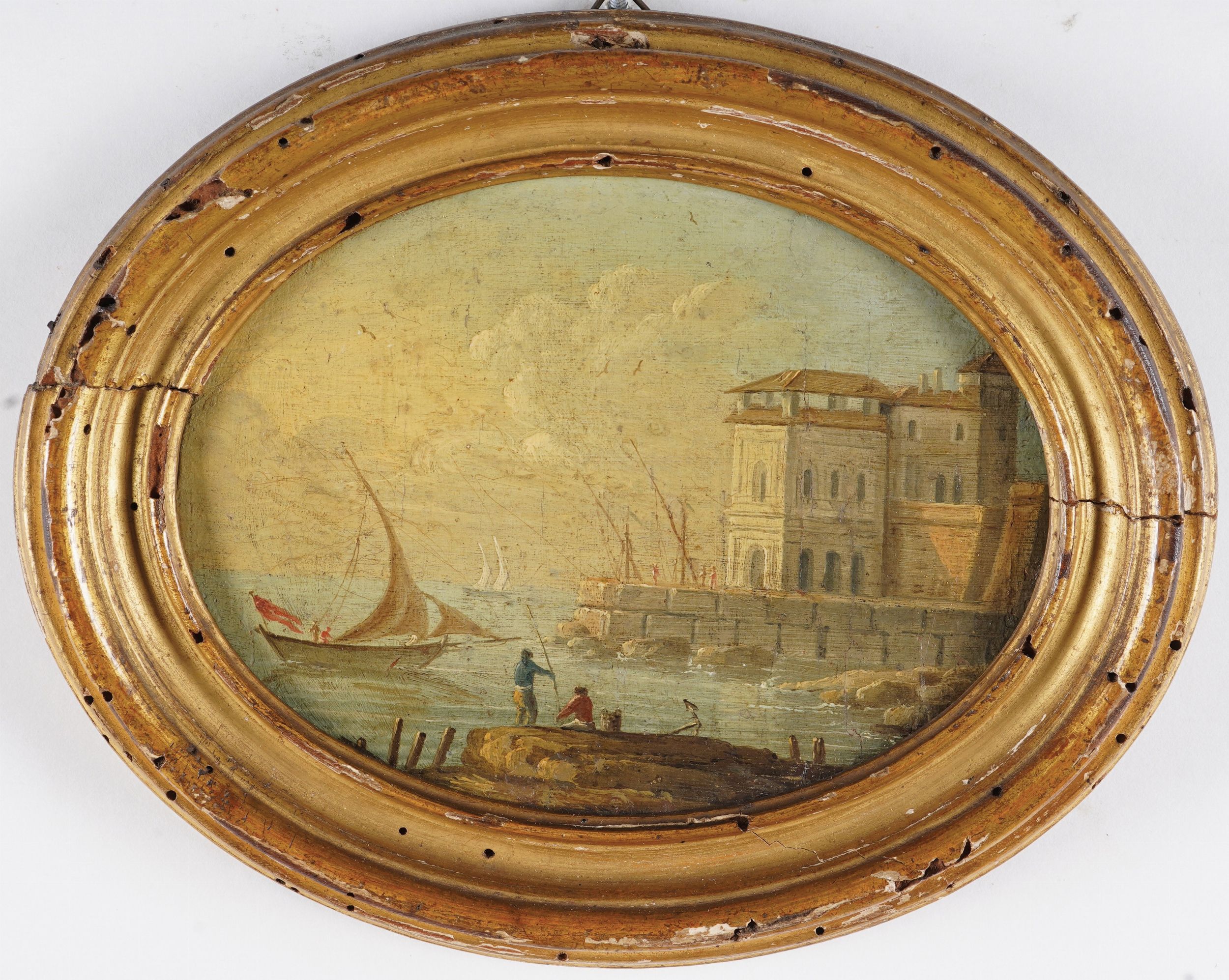 Scuola del XVIII secolo Paesaggi costieri con figure e imbarcazioni