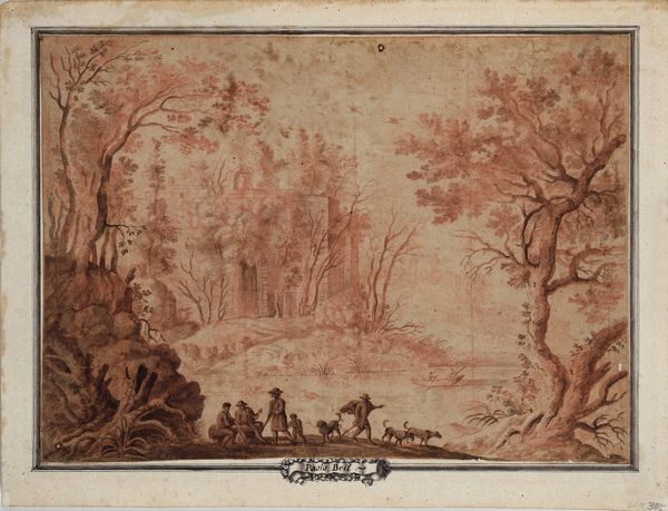 Scuola olandese del XVII secolo Paesaggio con cacciatori