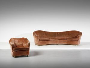 Dimensioni delle sole strutture senza cuscini: divano: 65 x 343 x 85 cm. pouf: 19 x 85 x 85 cmProvenienza: Collezione [..]
