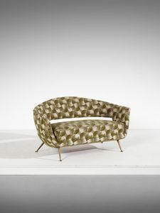 Anni Sessanta.Dimensioni: appendiabiti 179 x 64 x 32 cm e 179 x 64 x 17 cm. divanetto cm 60 x 111 x 40 cm