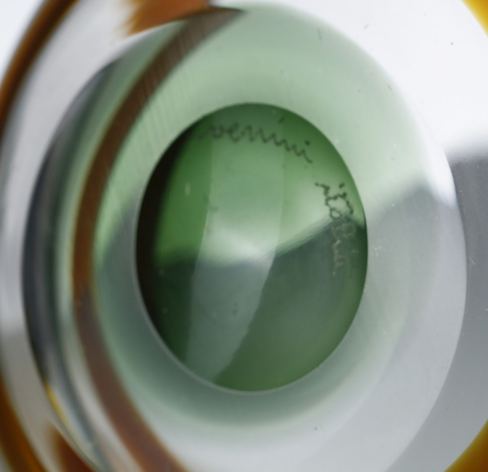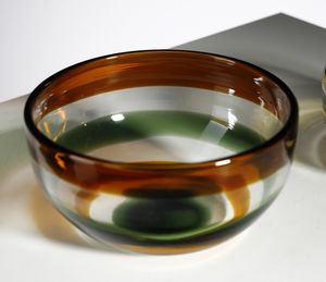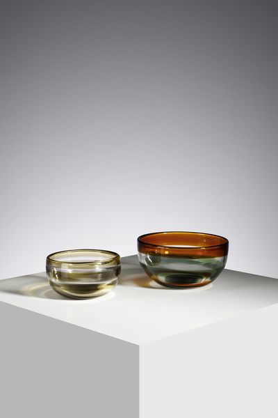 Lotto di due ciotole per Venini. Vetro soffiato trasparente incolore decorato con [..]