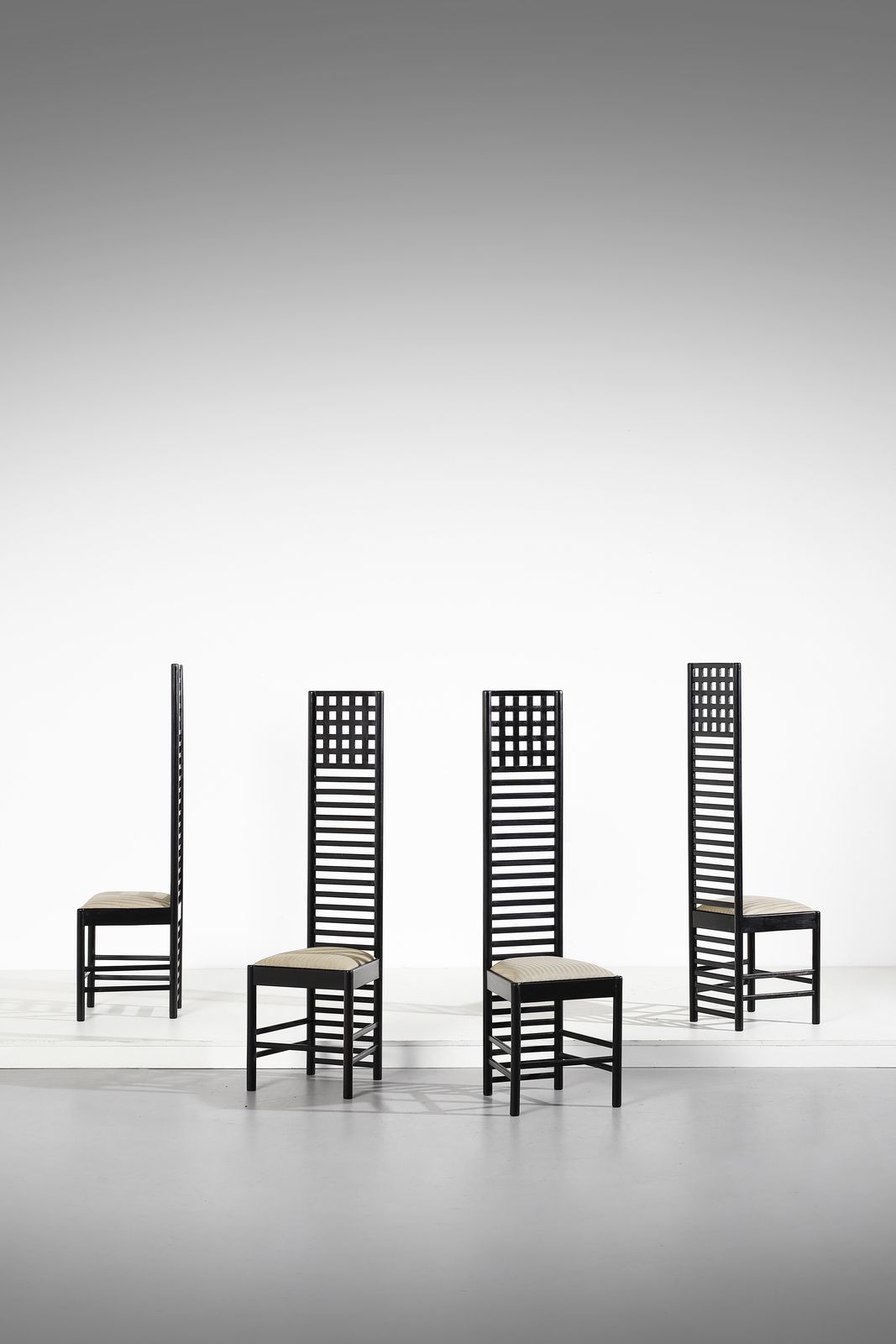 Lotto di quattro sedie ispirate al mod. Hill House 1 di Charles Rennie Mackintos [..]