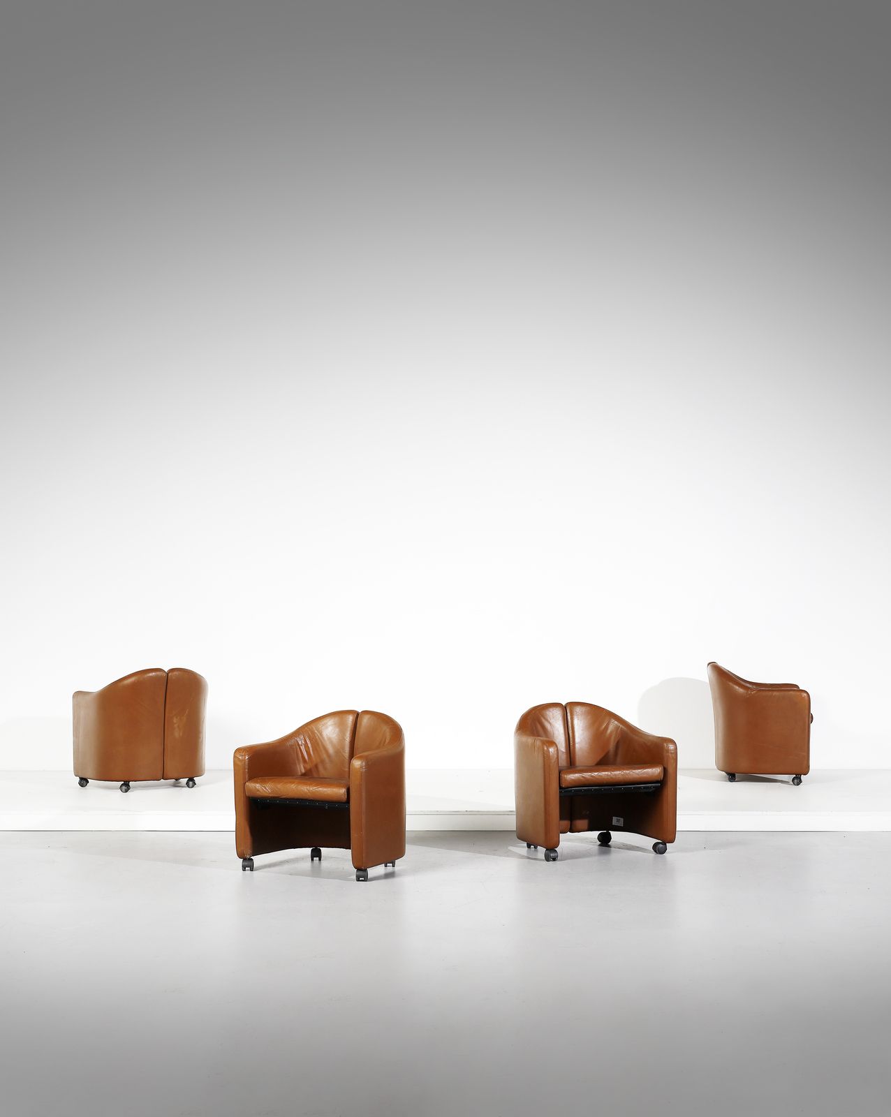 Quattro poltroncine su rotelle mod. PS142 per Tecno