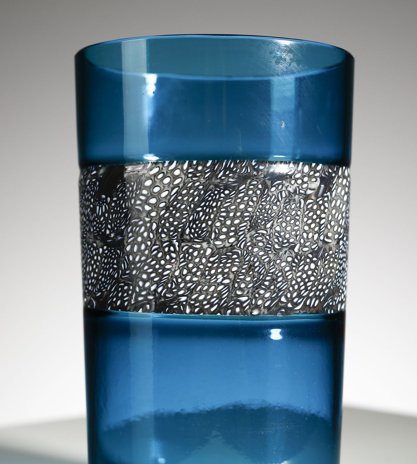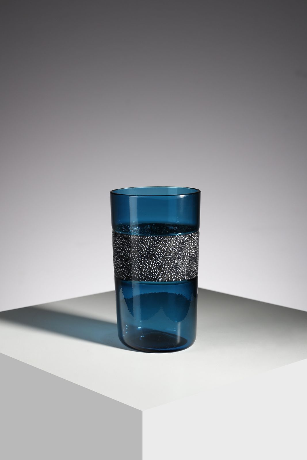 Vaso mod. 3608 della serie Murrine per Venini. Vetro soffiato trasparente blu a [..]