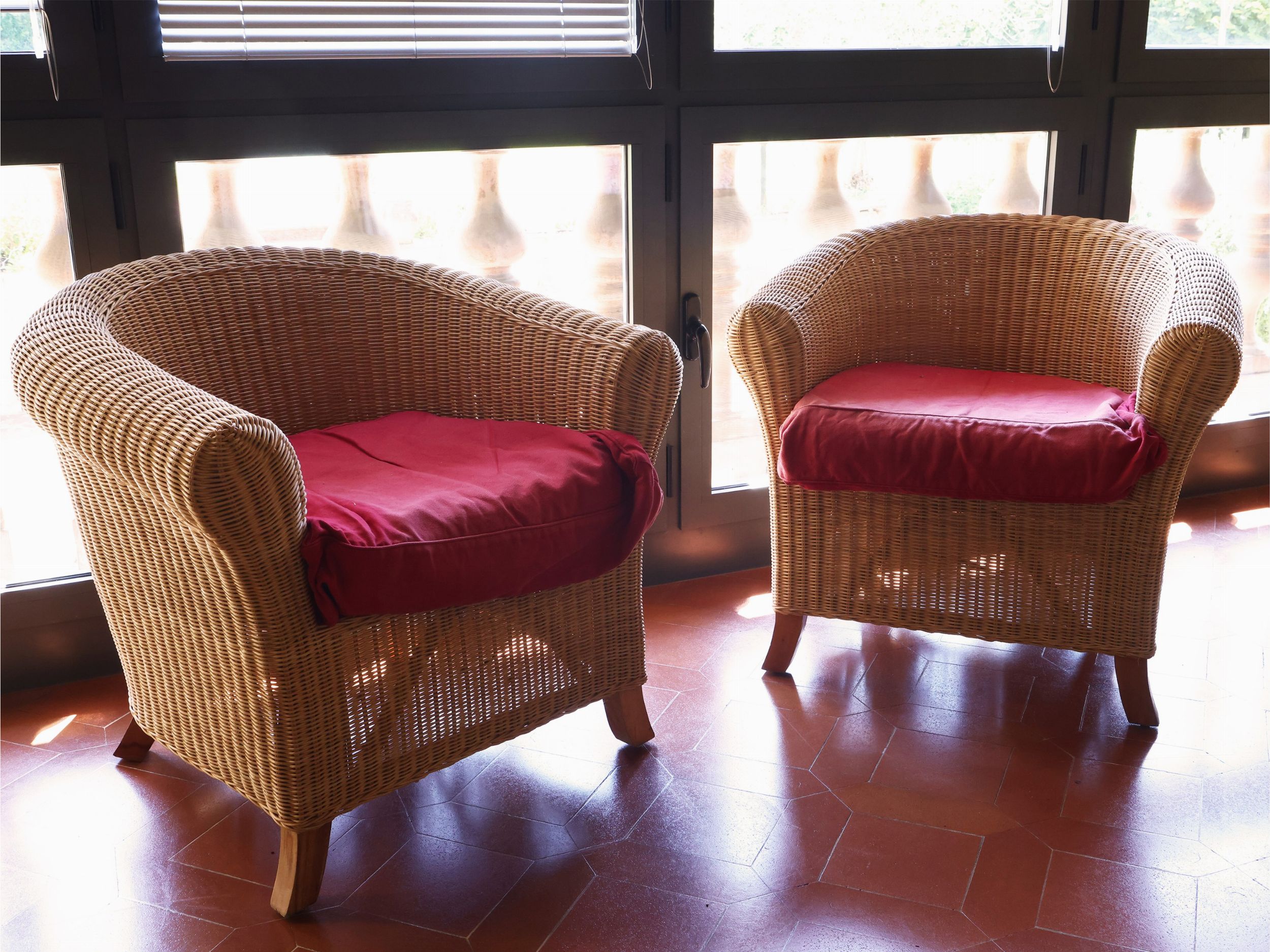 Coppia di poltroncine a pozzetto da giardino in midollino