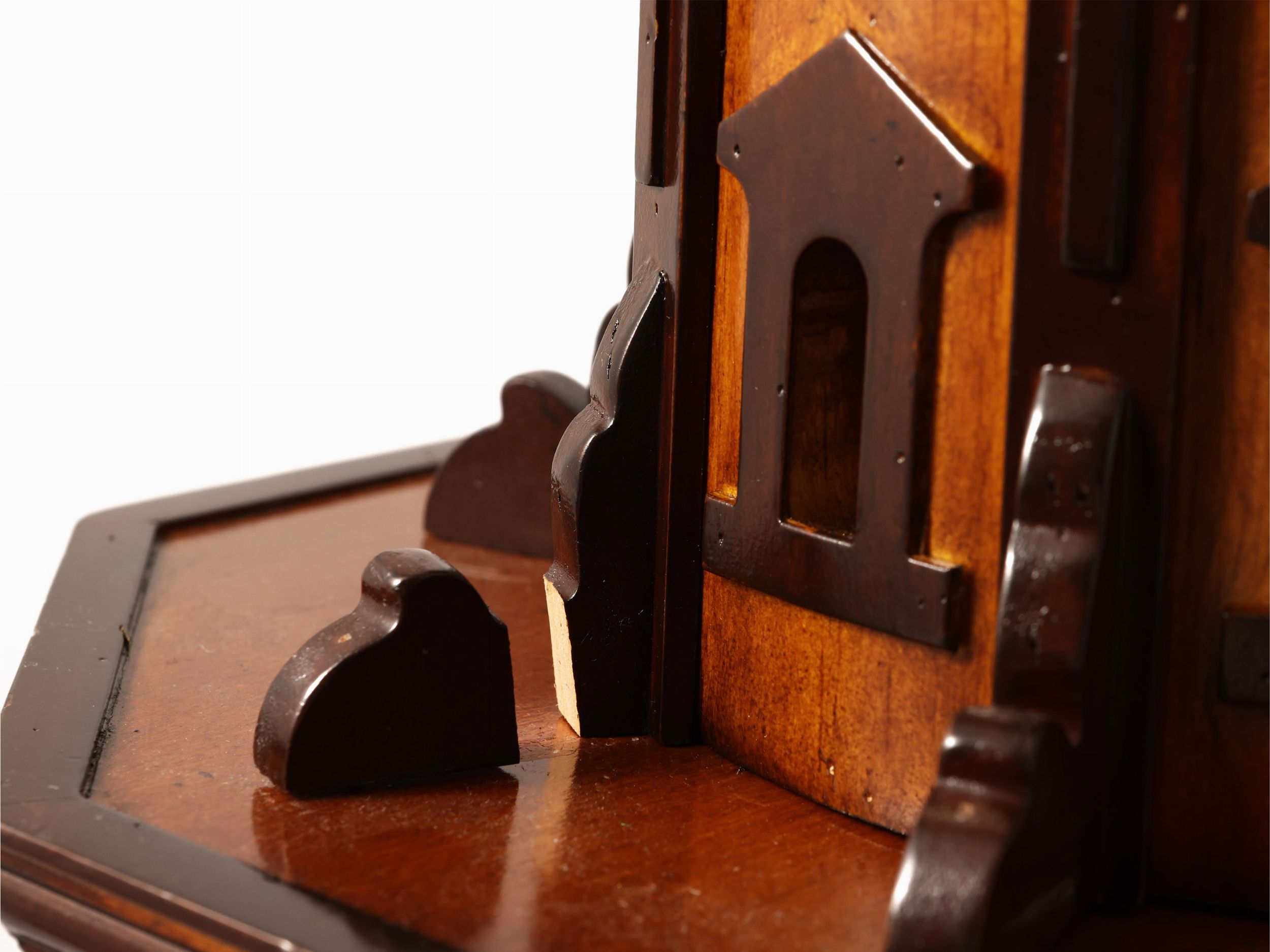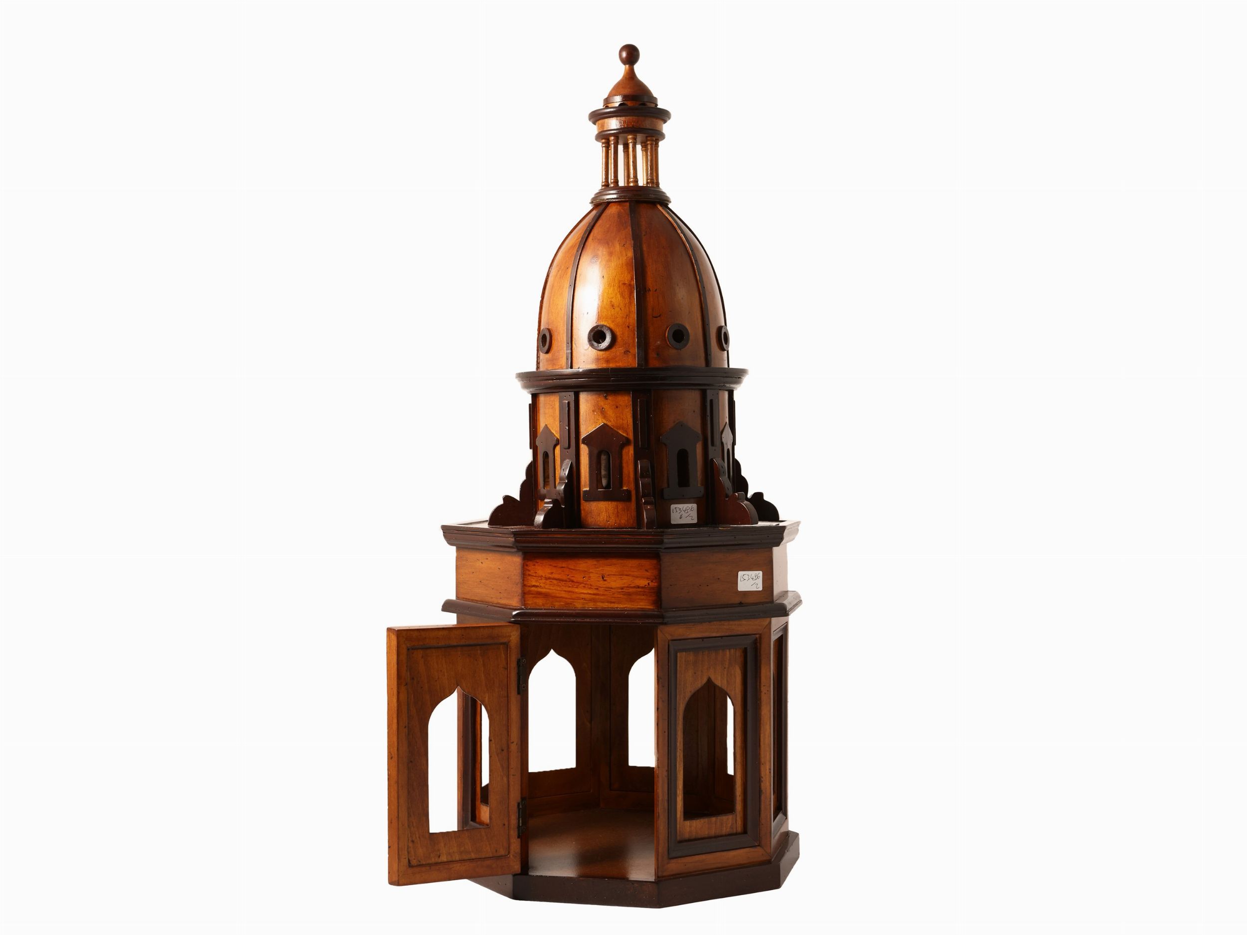 h cm 62x25x25; h cm 47x30 prima metà del XX secolo il primo riproducente una cupola, che si spira a quella della chiesa di San Frediano in Cestello a Firenze, poggiante su una base a sezione ottagonale con finestre a cuspide, una della quali apribile a sportello, lievi difetti; il secondo riproduce una scala elicoidale