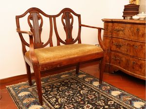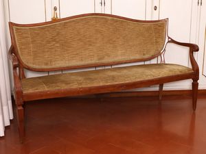 lungh cm 172 fine del XVIII secolo schienale a scudo allungato, braccioli desinenti a voluta, gambe a faretra [..]
