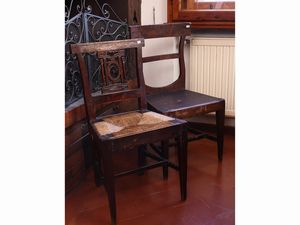 h da cm 84 a cm 90 fine del XVIII secolo una con cartella intagliata con ghirlanda tra colonne e sedile rivestito [..]