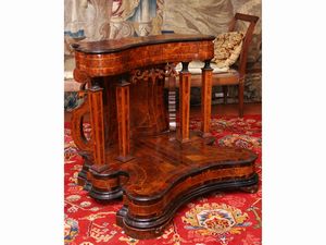 h cm 81x90x83 prima metà del XVIII secolo di forma architettonica, interamente intarsiato con filettature in [..]