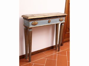 h cm72x72x19 fine del XVIII secolo piano rettangolare dipinto ad imitazione del marmo giallo, pendaglina con [..]