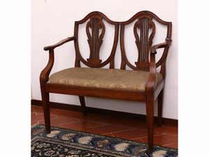 lungh cm 92 Toscana, fine del XVIII secolo doppio schienale a scudo con cartella a lira, braccioli sinuosi a [..]