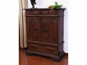 h cm 98x81x34 XVII secolo ricavato da un inginocchiatoio, un cassetto ed uno sportello sul fronte a formelle [..]