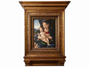 cm 55,5x43,5 tempera su tavola, in cornice a tempietto in legno intagliato, dorato e laccato