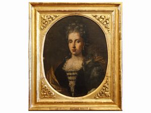 cm 70x58 XVIII secolo olio su tela ovale, in cornice in legno intagliato e dorato, alcuni difetti