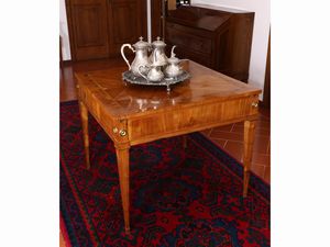 h cm 71x85x85 Toscana, fine del XVIII secolo piano di forma quadrata, intarsiato con doppia filettatura a nastro [..]