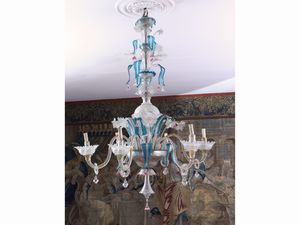 h cm 70x70 XX secolo sei bracci portacandele a doppia voluta con pendenti sfaccettati e catene di perle, possibili [..]