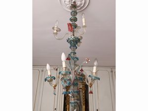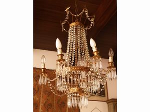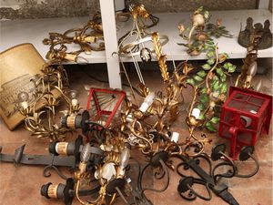 torcera h cm 60/103, lampadario h cm 76x53 (2) XVIII secolo abbinata ad un piccolo lampadario a paniere in metallo [..]