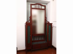 h cm 210x120x27 inizio XX secolo di gusto liberty, centrato da specchiera tra colonne con vetri verdi