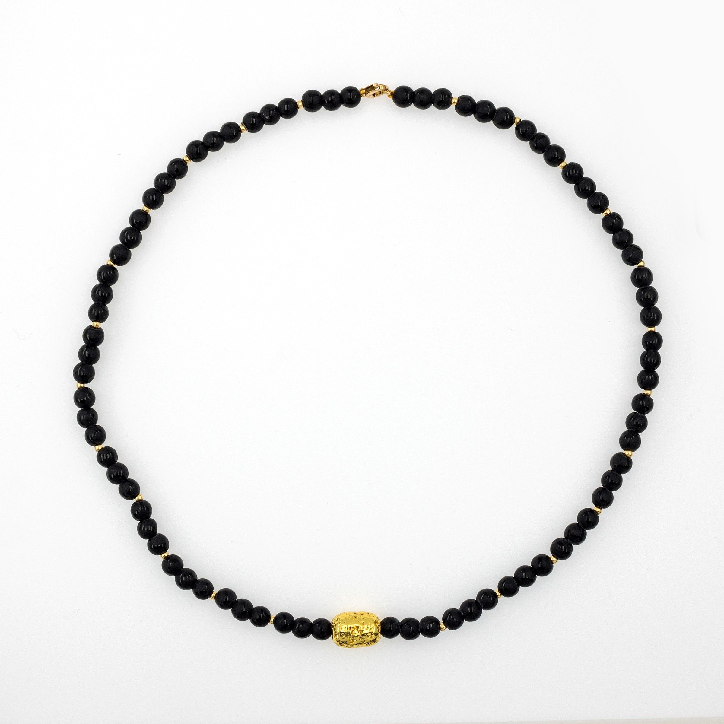 Collana agata nera e ematite gialla, chiusura in oro giallo 18kt