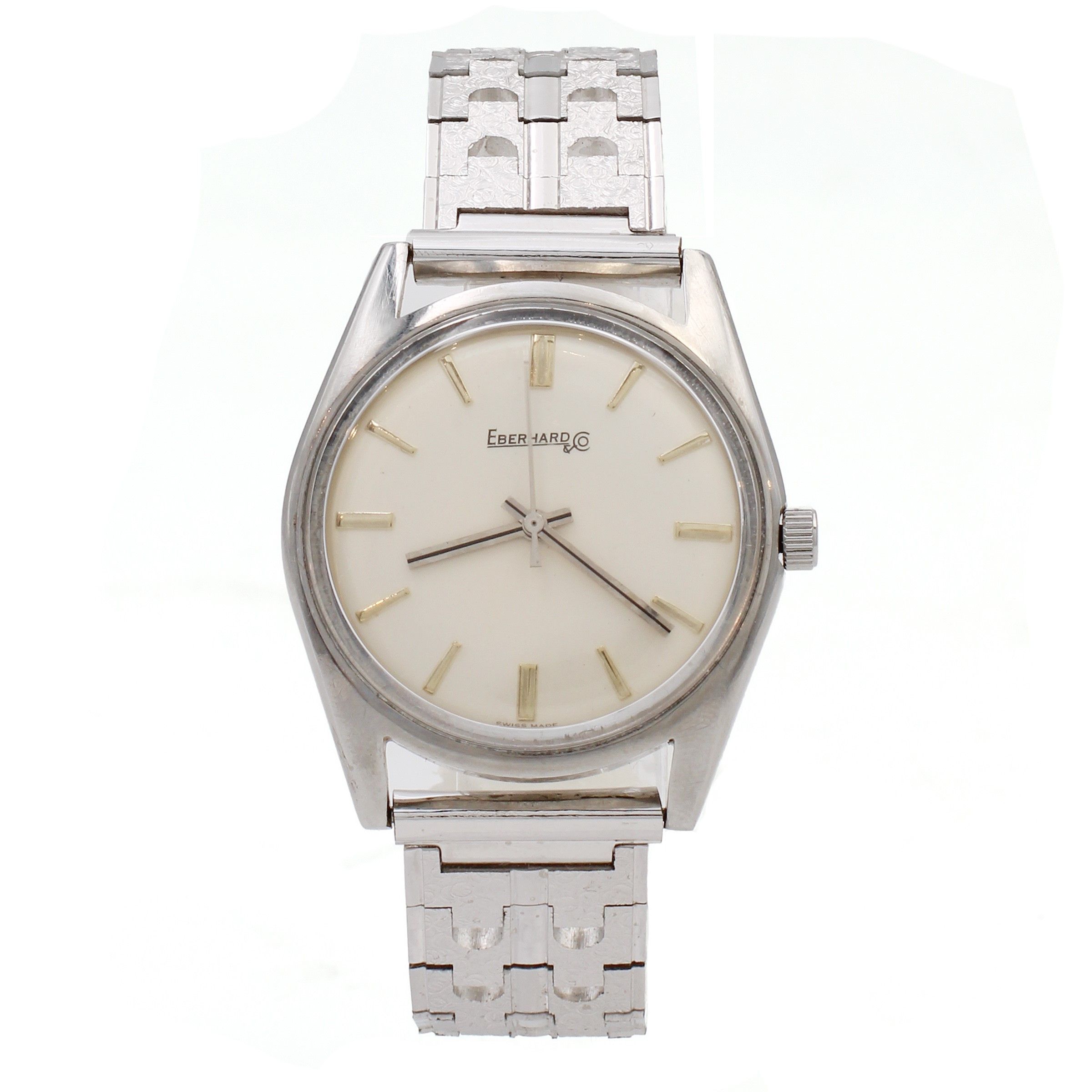 1960 circa in acciaio, cassa tonda 35 mm. quadrante bianco con indici, movimento meccanico a carica manuale, bracciale vintage in acciaio