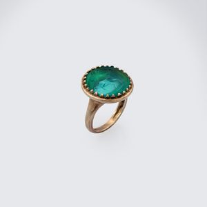 Anello in argento dorato e pasta vitrea con cammeo inciso