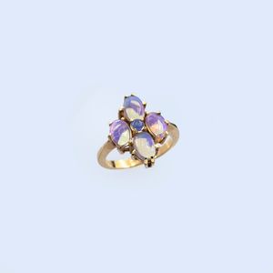 Anello in oro giallo 14kt con cinque opali arlecchino