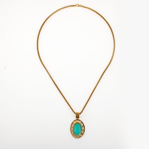 Collana in argento dorato e pasta vitrea con cammeo inciso