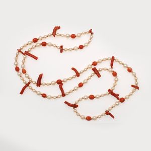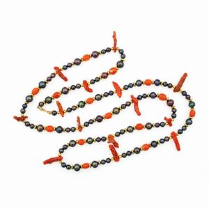 Collana in corallo, perle coltivate di acqua dolce e ematite gialla, chiusura in [..]