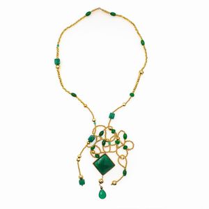 Collana in ematite gialla e calcedonio, chiusura e castone quadrato in oro giallo [..]