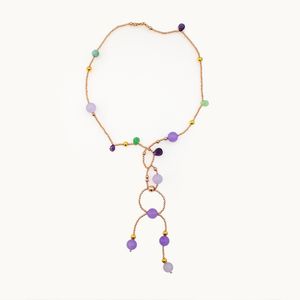 Collana in ematite rosa, ametiste e calcedonio, chiusura in oro giallo 18kt