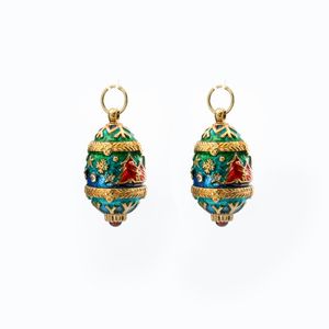Due pendenti ovette in argento dorato e smalti policromi