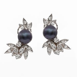 Orecchini a lobo in oro bianco 18kt con due perle Tahiti e brillanti
