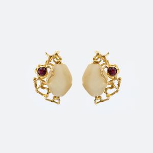 Orecchini a lobo in oro giallo 18kt madreperla e rubini