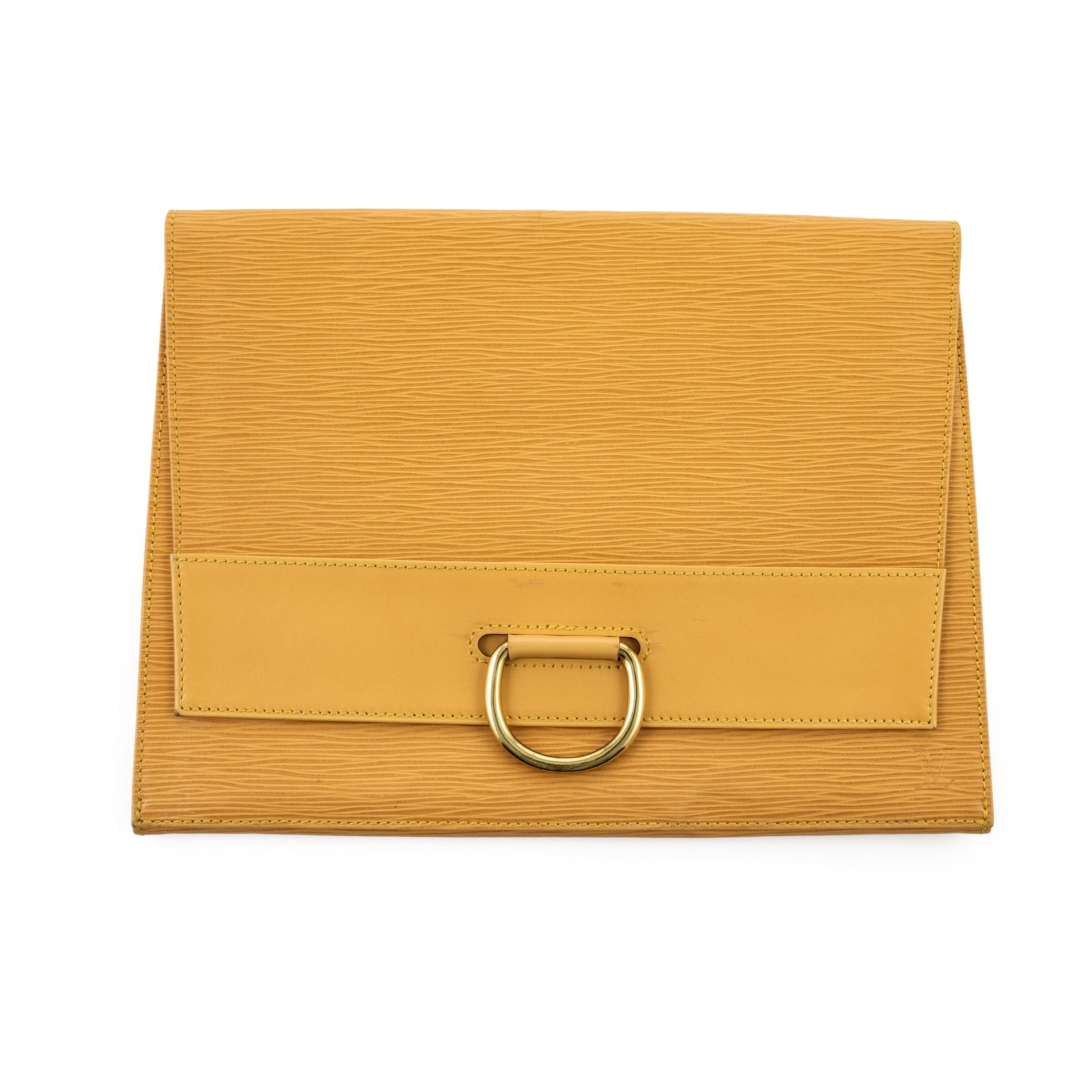 in pelle epi beige finiture dorate, interno in pelle ad uno scomparto con tasca, chiusura a patta con staffa