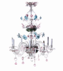 Lampadario in vetro di Murano a sei luci. XX secolo